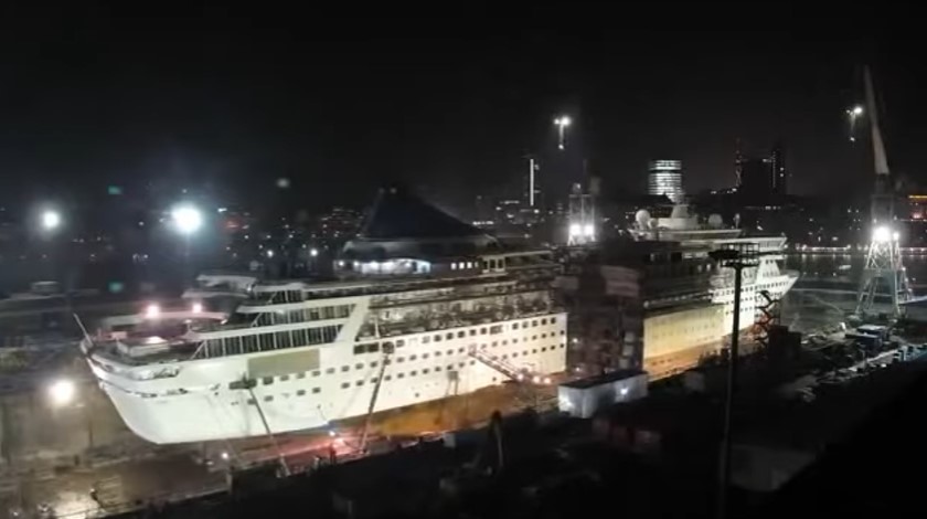 Um pequeno filme sobre o corte e posterior ampliação do NCL - Norwegian Crown, que depois desta operação foi vendido à Fred. Olsen Cruise Lines, passando a operar sob o nome Balmoral